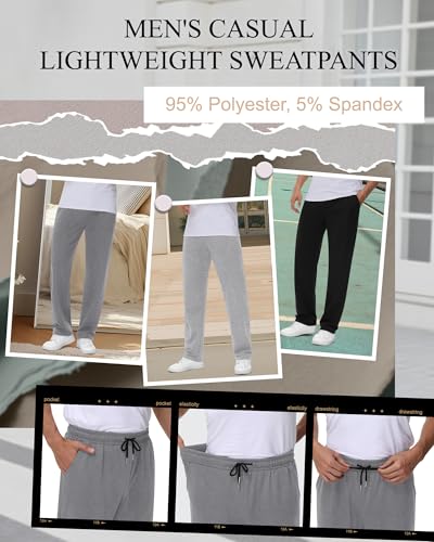 Fabric type: 95% Polyester, 5% SpandexCare instructions: Machine WashOrigin: ImportedClosure type: Pull OnPackage Included: you will receive 3 pack men's sweatpants to meet your daily need, solid color styles are also convenient for your daily matching; Please confirm the size before purchasing, and if you want a loose fit, you can choose a larger sizeComfortable Material: men's drawstring pants are made of 95% polyester and 5% spandex, which are elastic and fits snugly, providing you with the comfort you need for the dayLoose Design: the men's sweatpants feature an open bottom and a loose design to facilitate your daily activities, and the drawstring provides a secure and adjustable fit; Whether you're lounging at home or running errands, these sweatpants can be your ideal choiceSuitable for All Occasions: this athletic pants for men is versatile and suitable for various activities such as parties, work, exercise, sports activities, travel, vacation and daily life; It can be easily matched with any occasionGarment Care Instructions: this men's workout pants is not just about style and casual, it also brings convenience; It can be hand washed in cold water or machine washed on a gentle cycle, hang or line dry, and do not bleach; Retaining their shape and vibrant color even after regular washes Perfect for everyday use. superior materials and excellent craftsmanship ensure long-lasting durability.